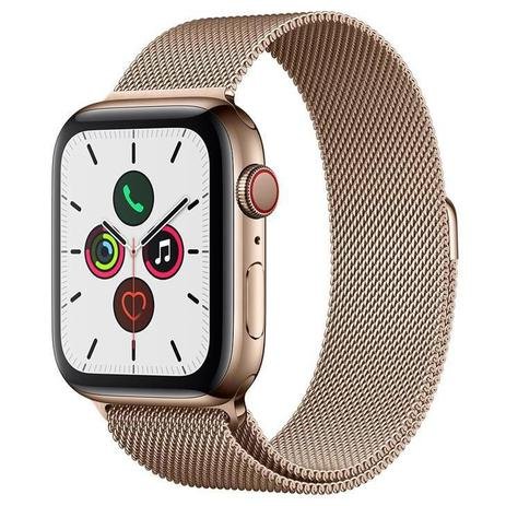 Apple Watch 5 Cell+GPS, 44 mm, Aço Inoxi Dourado, Puls de Aço Inoxid Dourado e Fecho Magné MWWJ2BZ/A
