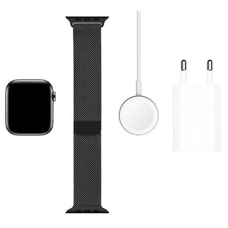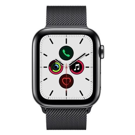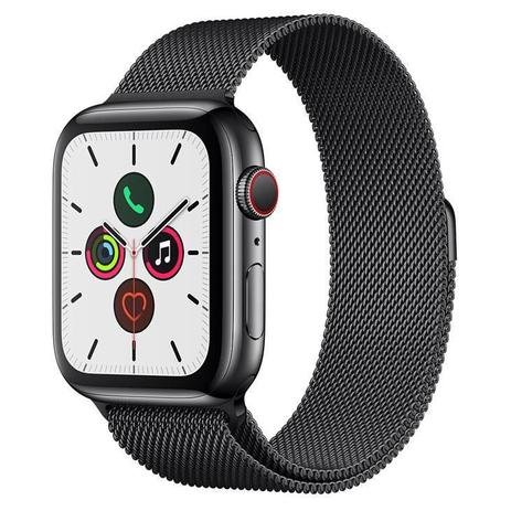 Apple Watch 5 Cellu+GPS 44 mm, Aço Inoxid Cinza Espac, Puls de Aço Inoxid Preto Fecho Magn MWWL2BZ/A