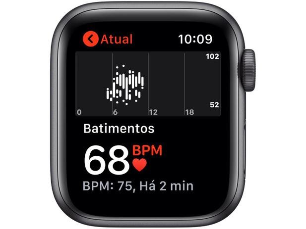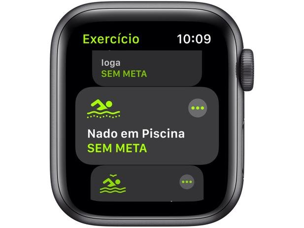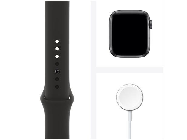 Modelo: Apple Watch SE (GPS) 40mm caixa cinza-espacial alumínio pulseira esportiva preta