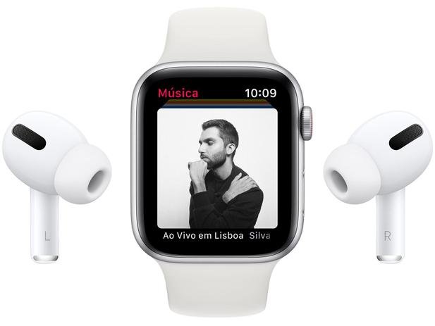 Recursos: Permite atender ligações e responder a mensagens direto do seu pulso, Acompanha suas atividades diárias e mostra suas tendências no app Fitness no iPhone, Resistente à água*, Notificações de frequência cardíaca alta e baixa e de ritmo cardíaco irregular**, Sincroniza e faz streaming de músicas e podcasts, Apple Pay, Bússola integrada e informações de elevação em tempo real, Detecção de queda, SOS Emergência***
