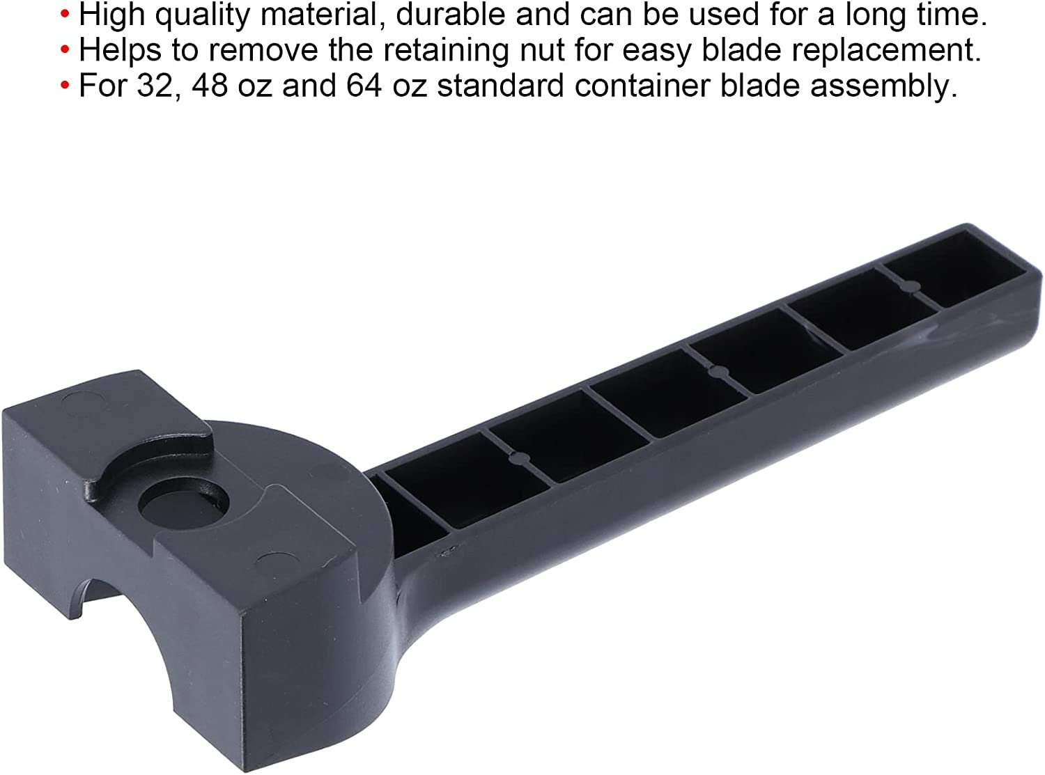 Para conjuntos de lâmina de contêiner padrão de 32, 48 onças e 64 onças. Feito de material ABS de alta qualidade, durável e pode ser usado por um longo tempo. Fácil de usar, adequado para uso em porcas de retenção de 15 mm de diâmetro. Ajuda a remover a porca de retenção para uma substituição rápida e fácil da lâmina. Fácil de substituir, alta confiabilidade, acessórios práticos para liquidificador.