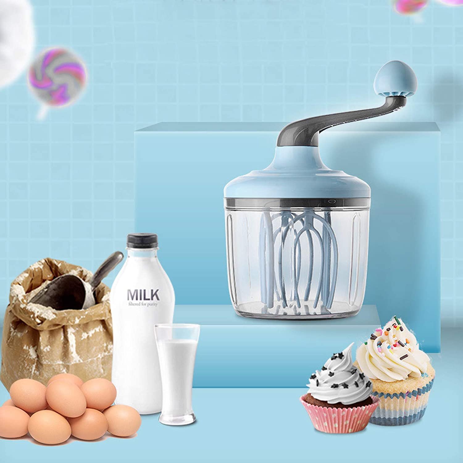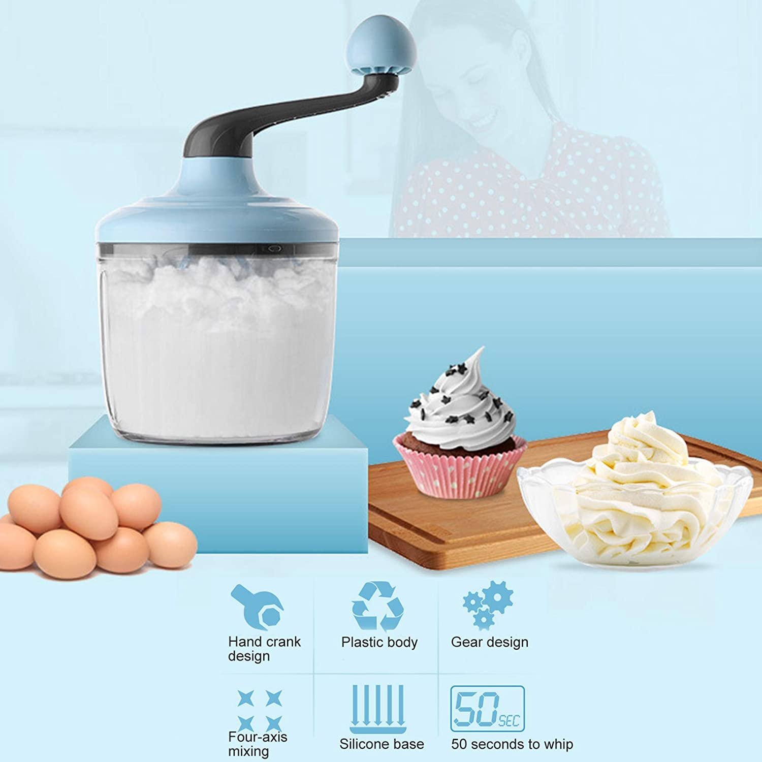 Liquidificador de assar, base de mistura de creme com manivela à mão, design antiderrapante para cozinha para casa