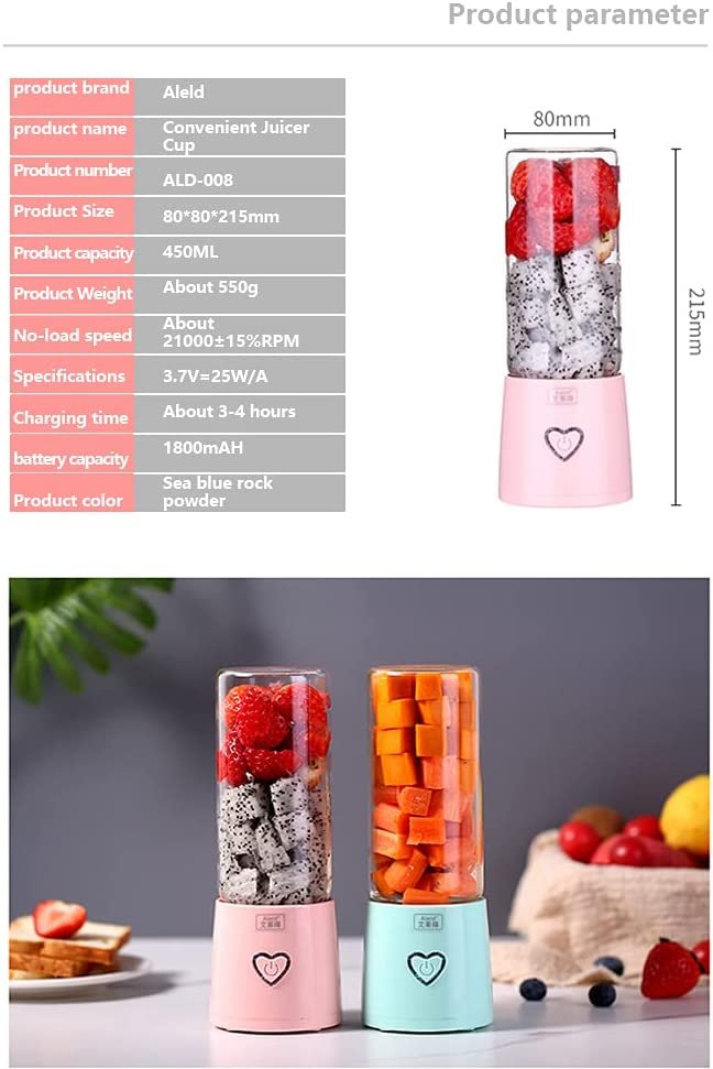 Sobre este item 【Perfeito para misturar bebidas saudáveis】: o liquidificador pessoal tem uma lâmina de aço inoxidável que mistura pós nutricionais e suplementos sem aglomerar; fatia facilmente através de frutas congeladas como bagas; liquidificador perfeito para frutas mais macias em bebidas e vitaminas misturadas. 【Potente e eficaz】: o liquidificador portátil com 6 folhas de aço inoxidável de alta velocidade, fácil de esmagar legumes e frutas. O liquidificador pessoal tem motor de cobre puro, que pode facilmente fazer suas bebidas favoritas em apenas algumas dezenas de segundos. O liquidificador de vitaminas para viagem oferece a você um desempenho poderoso de extração de nutrientes e vitaminas. 【 Livre de BPA e material de segurança 】: este liquidificador portátil é feito de materiais de grau alimentício e livre de BPA. A lâmina interna de aço inoxidável é um design oculto para segurança. Assim, você não corre o risco de machucar seus dedos. A comida está em contato com materiais ecológicos e inofensivos para lhe proporcionar bebidas saudáveis. Perfeita para shake de proteína, milkshake, suco, comida de bebê, molhos de salada, etc. 【Fácil operação e controle de um botão】: o mini liquidificador é fácil de limpar adicionando água e pressionando o botão de energia para iniciar o modo autolimpante. Ele vem com uma escova de limpeza para você limpar os cantos internos da xícara. Para preocupação com segurança, não deixe o liquidificador de molho na água. 【Multifuncional】: este liquidificador é ótimo para fazer vitaminas nutritivas de porção única, misturas de suco, misturar frutas e legumes, café, leite em pó, shake de proteína, comida suplementar para bebês. Também pode ser usado como garrafa comum. Ideal para qualquer cozinha, escritório ou ao ar livre.