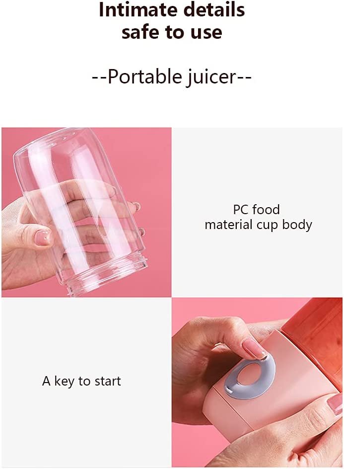 Sobre este item 【Material de grau alimentício】: o liquidificador de vitaminas compacto e é feito de material de polipropileno e ABS de grau alimentício, sem BPA, como a mamadeira para bebês, garante um uso extremamente seguro. Cabe na maioria dos suportes de copo de tamanho padrão. 【Prático e eficaz】: o copo de espremedor está equipado com 6 lâminas de aço inoxidável 304. Com um maior nível de frequência de rotação cerca de 18.000 vezes por minuto, leva apenas dezenas de segundos para trazer a você vitaminas frescas, proteínas/shakes de leite, sucos frescos, máscaras, comida de bebê etc. 【Portátil e ampla aplicação】: fácil de carregar. Antiderrapante, mini liquidificador com manga de silicone, não cai facilmente. A alça de borracha facilita a transportabilidade para o escritório, academia ou aula, no carro ou na sua bolsa em qualquer lugar. Ideal para trabalho, viagens, acampamento, etc. 【Recarregável por USB e fácil de limpar】: a bateria recarregável de segurança embutida torna este liquidificador portátil USB em qualquer lugar e a qualquer momento. O carregamento USB é adequado para adaptadores, laptops, carregadores de carro, etc. O liquidificador pessoal pode ser limpo manualmente e enchendo-o com água e limpando-o automaticamente, tanto o motor quanto a garrafa podem ser enxaguados diretamente com água, tão fácil de limpar. 【Recarregável por USB】: o copo de espremedor elétrico tem uma bateria recarregável embutida de 1300 mAh, recarregada através de carregadores portáteis, laptops, computadores ou outros dispositivos USB. Carregue 3 a 5 horas e use 10 a 12 vezes.
