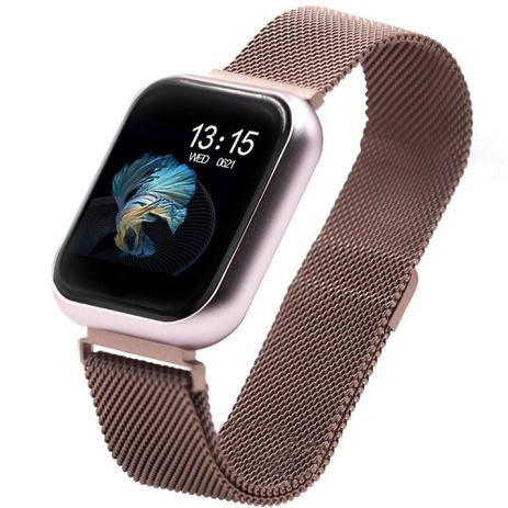 – Aplicativo Mobile: Happy Sports – Fundo personalizavel com foto via Aplicativo – Leitura na tela de mensagens do WhatsApp, Facebook, Twitter, WeChat etc.. Controle sua saúde durante o dia a dia com o Smartwatch você informa todos os seus dados sobre esportes, e consegue ajustar todos os seus programas de exercícios e tem um controle de vida mais saudável. O relógio ainda não deixa você perder notificações de chamada e mensagens importantes enquanto pratica seus exercícios. Pulseira com Designer moderno, sendo uma em silicone e outra em metal. As Pulseiras são com fecho magnético ergonômico ajustável (milanese) e pulseira de silicone, serve para todos os pulsos. Principais características: – Tela colorida de 1,3 polegadas – Fonte grande, alto brilho, melhor para olhar. – Monitor de ritmo cardíaco dinâmico durante todo o dia – Sensor de frequência cardíaca incorporado, pode gravar a curva dinâmica da frequência cardíaca em todo o processo de movimento. Suporte ao usuário para verificar todos os tipos de dados do esporte – Múltiplos Modos Esportivos Fornece vários modos de esportes, como caminhada, corrida, escalada, ciclismo, basquete, futebol, badminton, etc. – Monitor de sono Ele pode gravar automaticamente o seu sono, você também pode ver a duração do sono e mais dados no aplicativo, ajudando você a desenvolver bons hábitos de sono – Longa duração da bateria Carregamento de absorção magnética, carregamento simples, baixo consumo de energia. A bateria interna de iões de lítio de 200mAh garante 15 dias em standby quando totalmente carregada – Interface APP Todos os recursos são refletidos no aplicativo, operam facilmente, analisam dados ao mesmo tempo, dão melhores instruções Informações Gerais Técnicas: Modelo: T80 Versão de Bluetooth: Bluetooth 4.0 Sistemas Operacionais Compatíveis: Android,IOS > – IOS 8.0 e acima das versões do 4S/5/5S/5C/6/6 Plus/6s/6s Plus/SE/7/7 Plus; – Android 4.4 e acima e suporta telefones inteligentes Androide com Bluetooh 4.0; -A prova de Respingos D’água – Língua: Portugues, árabe, Inglês, francês, japonês, coreano, russo, Chinês simplificado, Chinês tradicional, turco Modo Operacional: Botão de toque Bateria: -Battery Capacity: 200mAh -Tempo de StandBy: 5 dias -Tempo de Carregamento: 1.5 Horas Funções: -Controle completo da sua saúde (pressão arterial, batimentos cardíacos, oxigênio do sangue, passos, monitor de sono, calorias gastas…). – Lembrete sedentário, irá lembrar que você está muito tempo parado. – Alarme com vibração para que não perca os horários dos treinos. -Recebe notificações de SMS, Whatsapp, Instagram e Facebook (entre outros). *Tipo de Alerta das notificações: Vibração -Controla as músicas do seu smartphone (troca música, antes, depois, pause e play). -Despertador e controle remoto da câmera do smartphone -GPS para medir distância percorrida -Lembrete sedentário. -Gire o pulso para mostrar as horas. – Previsão do tempo diário direto no seu relógio. -Monitor de sono. Medidas, Material e Peso do produto: -Forma do Mostrador: Em forma de quadrado -Material da Capa: Aço inoxidável -Materia de Pulseira: TPU -Tamanho de Pusleira: 250 x 20 mm -Tamanho de Mostrador: 39,9 x 34 x 10,2 mm -Comprimento Vestível: 160 – 240 mm -Peso do Produto: 0,0390 kg -Peso do Pacote: 0,10 kg -Tamanho do Produto (L x W x H): 14,10 x 8,50 x 3,10 cm / 5,55 x 3,35 x 1,22 polegadas ITENS INCLUSOS: 1 x Relógio Smartwatch 1 x Pulseira de silicone 1 x Pulseira de metal 1 x Cabo de carregamento 1 x Manual