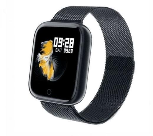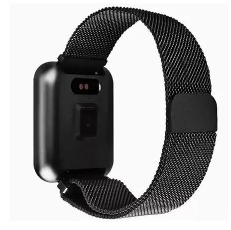 O relógio Possui a opção de poder colocar sua própria foto como capa do relógio. – Receber Notificações de redes sociais SMS entre outros. – Basta Girar o pulso para mostrar as horas. – 3 Modelos de mostradores de relógio diferentes para uso (analógico e digital) – Lembrete sedentário, te lembra que você está muito tempo parado e precisa levantar, alongar, etc. – Alarme com vibração para que não perca o horário – Controla as músicas do seu celular (troca música, antes, depois, pause e play) – Previsão do tempo diário direto no seu relógio – Batimentos Cardíacos – Controle de sono – Calcula passos, km e calorias – GPS – Rota (Usando App No celular) – Controle de Pressão Arterial – É possível aumentar e diminuir luminosidade da tela – Excelente Tempo de Duração da bateria – Carregamento magnético – Photo Control, mire com o celular no local onde quer bater a foto e clique no relógio para bater a foto direto pelo relógio! – 8 modelos de sensores de movimentos para controle de diferentes esportes na palma da sua mão! (Caminhada, Corrida, Pular Corda, Bike, Badminton, Basquete e Futebol) – Pulseira com fecho magnético ergonômico ajustável (milanese) ou pulseira de silicone, serve para todos os pulsos. – É possível trocar de pulseiras ESPECIFICAÇÕES: – Cor PRETO – Display colorido – Tamanho da Tela: 38mm – 1,3 polegadas – Bluetooth 4.0 – Método de carregamento: interface in-line de carregamento magnético – Bateria: 200mAh – Tempo de carregamento: 2 h mais ou menos – Matérias da pulseira: Silicone e Milanese (Magnética) – Resolução: 240 PRODUTO ACOMPANHA: – 1 Smartwatch – 1 Manual – 1 Pulseira Silicone + 1 Pulseira Milanese – 1 Carregador para o Relógio