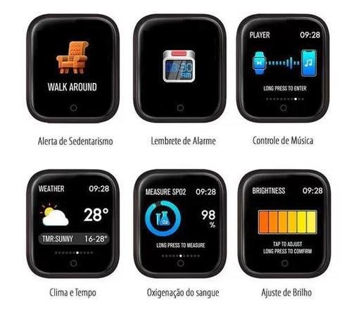 O relógio Possui a opção de poder colocar sua própria foto como capa do relógio. – Receber Notificações de redes sociais SMS entre outros. – Basta Girar o pulso para mostrar as horas. – 3 Modelos de mostradores de relógio diferentes para uso (analógico e digital) – Lembrete sedentário, te lembra que você está muito tempo parado e precisa levantar, alongar, etc. – Alarme com vibração para que não perca o horário – Controla as músicas do seu celular (troca música, antes, depois, pause e play) – Previsão do tempo diário direto no seu relógio – Batimentos Cardíacos – Controle de sono – Calcula passos, km e calorias – GPS – Rota (Usando App No celular) – Controle de Pressão Arterial – É possível aumentar e diminuir luminosidade da tela – Excelente Tempo de Duração da bateria – Carregamento magnético – Photo Control, mire com o celular no local onde quer bater a foto e clique no relógio para bater a foto direto pelo relógio! – 8 modelos de sensores de movimentos para controle de diferentes esportes na palma da sua mão! (Caminhada, Corrida, Pular Corda, Bike, Badminton, Basquete e Futebol) – Pulseira com fecho magnético ergonômico ajustável (milanese) ou pulseira de silicone, serve para todos os pulsos. – É possível trocar de pulseiras ESPECIFICAÇÕES: – Cor PRETO – Display colorido – Tamanho da Tela: 38mm – 1,3 polegadas – Bluetooth 4.0 – Método de carregamento: interface in-line de carregamento magnético – Bateria: 200mAh – Tempo de carregamento: 2 h mais ou menos – Matérias da pulseira: Silicone e Milanese (Magnética) – Resolução: 240 PRODUTO ACOMPANHA: – 1 Smartwatch – 1 Manual – 1 Pulseira Silicone + 1 Pulseira Milanese – 1 Carregador para o Relógio