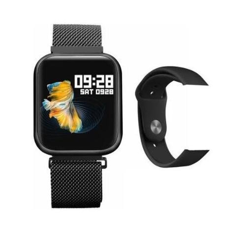 O relógio Possui a opção de poder colocar sua própria foto como capa do relógio. – Receber Notificações de redes sociais SMS entre outros. – Basta Girar o pulso para mostrar as horas. – 3 Modelos de mostradores de relógio diferentes para uso (analógico e digital) – Lembrete sedentário, te lembra que você está muito tempo parado e precisa levantar, alongar, etc. – Alarme com vibração para que não perca o horário – Controla as músicas do seu celular (troca música, antes, depois, pause e play) – Previsão do tempo diário direto no seu relógio – Batimentos Cardíacos – Controle de sono – Calcula passos, km e calorias – GPS – Rota (Usando App No celular) – Controle de Pressão Arterial – É possível aumentar e diminuir luminosidade da tela – Excelente Tempo de Duração da bateria – Carregamento magnético – Photo Control, mire com o celular no local onde quer bater a foto e clique no relógio para bater a foto direto pelo relógio! – 8 modelos de sensores de movimentos para controle de diferentes esportes na palma da sua mão! (Caminhada, Corrida, Pular Corda, Bike, Badminton, Basquete e Futebol) – Pulseira com fecho magnético ergonômico ajustável (milanese) ou pulseira de silicone, serve para todos os pulsos. – É possível trocar de pulseiras ESPECIFICAÇÕES: – Cor Rosa – Display colorido – Tamanho da Tela: 38mm – 1,3 polegadas – Bluetooth 4.0 – Método de carregamento: interface in-line de carregamento magnético – Bateria: 200mAh – Tempo de carregamento: 2 h mais ou menos – Matérias da pulseira: Silicone e Milanese (Magnética) – Resolução: 240 PRODUTO ACOMPANHA: – 1 Smartwatch – 1 Manual – 1 Pulseira Silicone + 1 Pulseira Milanese – 1 Carregador para o Relógio