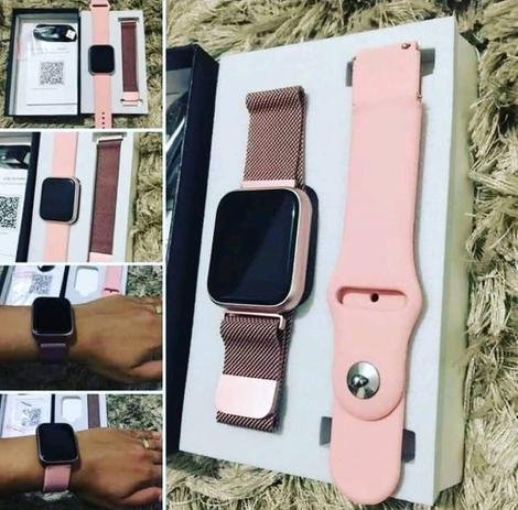 – O relógio Possui a opção de poder colocar sua própria foto como capa do relógio. – Receber Notificações de redes sociais SMS entre outros. – Basta Girar o pulso para mostrar as horas. – 3 Modelos de mostradores de relógio diferentes para uso (analógico e digital) – Lembrete sedentário, te lembra que você está muito tempo parado e precisa levantar, alongar, etc. – Alarme com vibração para que não perca o horário – Controla as músicas do seu celular (troca música, antes, depois, pause e play) – Previsão do tempo diário direto no seu relógio – Batimentos Cardíacos – Controle de sono – Calcula passos, km e calorias – GPS – Rota (Usando App No celular) – Controle de Pressão Arterial – É possível aumentar e diminuir luminosidade da tela – Excelente Tempo de Duração da bateria – Carregamento magnético – Photo Control, mire com o celular no local onde quer bater a foto e clique no relógio para bater a foto direto pelo relógio! – 8 modelos de sensores de movimentos para controle de diferentes esportes na palma da sua mão! (Caminhada, Corrida, Pular Corda, Bike, Badminton, Basquete e Futebol) – Pulseira com fecho magnético ergonômico ajustável (milanese) ou pulseira de silicone, serve para todos os pulsos. – É possível trocar de pulseiras ESPECIFICAÇÕES: – Cor Rosa – Display colorido – Tamanho da Tela: 38mm – 1,3 polegadas – Bluetooth 4.0 – Método de carregamento: interface in-line de carregamento magnético – Bateria: 200mAh – Tempo de carregamento: 2 h mais ou menos – Matérias da pulseira: Silicone e Milanese (Magnética) – Resolução: 240 PRODUTO ACOMPANHA: – 1 Smartwatch – 1 Manual – 1 Pulseira Silicone + 1 Pulseira Milanese – 1 Carregador para o Relógio