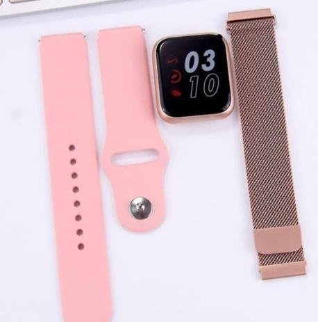 Descrição: Relógio Inteligente com Design, eficiência e qualidade para sua saúde e dia a dia. Modos de esporte, Notificações do celular, Cronômetro, Batimentos Cardíacos, monitoramento de sua saúde no geral, tudo no seu pulso em um só aparelho. O melhor modelo da linha P80.ENVIAMOS O APARELHO COM DUAS PULSEIRAS, SENDO UMA DELAS MAGNÉTICA!USAR QR CODE DO MANUAL PARA DOWNLOAD DO APP .ESPECIFICAÇÕES:-Conexão: Android e IOS- Notificações de Mídia Social: WhatsApp, Facebook e Instagram – Display colorido em alta resolução com tela full touch screen – Tela de 1.3 polegadas (38 mm) – Luz de notificação para informar que há mensagens não lidas. – Controle de movimentos diários – Rastreador de frequência cardíaca 24 horas – Calorias gastas – Previsão do tempo – Relógio resistente à água (não indicamos mergulhar) – Passômetro – Monitora os batimentos cardíacos (não serve para uso profissional) – Monitoramento fitness (8 modelos de sensores de movimentos para controle de diferentes esportes: caminhada, corrida, pular corda, bike, natação, badminton, — basquete e futebol) – Rastreador de sono – Controle remoto da câmera do smartphone – Duração da bateria 48H ( com uso) / com uso regrado o tempo pode ser superior! – Idioma em PORTUGUÊS – Pulseira removível em aço e silicone – Bluetooth 4.0 Itens Inclusos: 1x Relógio P80 ROSE 1x Pulseira milanese Magnetica 1x Pulseira Silicone Lisa 1x Carregador 1x Manual-OBRIGADO PELA VISITA E BOAS COMPRAS.