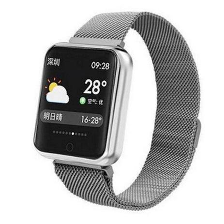 Relógio Smartwatch Inteligente P70 Pro + Duas Pulseiras – Cor: Prata ***TEMOS 3 CORES DISPONIVEIS, CONFIRA O PERFIL DE NOSSA LOJA, PARA VER TODOS OS PRODUTOS E CORES*** FUNÇÕES: – O relógio Possui a opção de poder colocar sua própria foto como capa do relógio. – Receber Notificações de redes sociais SMS entre outros. – Basta Girar o pulso para mostrar as horas. – 3 Modelos de mostradores de relógio diferentes para uso (analógico e digital) – Lembrete sedentário, te lembra que você está muito tempo parado e precisa levantar, alongar, etc. – Alarme com vibração para que não perca o horário – Controla as músicas do seu celular (troca música, antes, depois, pause e play) – Previsão do tempo diário direto no seu relógio – Batimentos Cardíacos – Controle de sono – Calcula passos, km e calorias – GPS – Rota (Usando App No celular) – Controle de Pressão Arterial – É possível aumentar e diminuir luminosidade da tela – Excelente Tempo de Duração da bateria – Carregamento magnético – Photo Control, mire com o celular no local onde quer bater a foto e clique no relógio para bater a foto direto pelo relógio! – 8 modelos de sensores de movimentos para controle de diferentes esportes na palma da sua mão! (Caminhada, Corrida, Pular Corda, Bike, Badminton, Basquete e Futebol) – Pulseira com fecho magnético ergonômico ajustável (milanese) ou pulseira de silicone, serve para todos os pulsos. – É possível trocar de pulseiras ESPECIFICAÇÕES: – Cor Prata – Display colorido – Tamanho da Tela: 38mm – 1,3 polegadas – Bluetooth 4.0 – Método de carregamento: interface in-line de carregamento magnético – Bateria: 200mAh – Tempo de carregamento: 2 h mais ou menos – Matérias da pulseira: Silicone e Milanese (Magnética) – Resolução: 240 PRODUTO ACOMPANHA: – 1 Smartwatch (cor no anúncio) – 1 Manual em diversas línguas – 1 Pulseira Silicone + 1 Pulseira Milanese – 1 Carregador para o Relógio