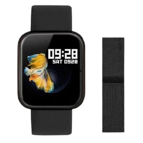 Relógio Smartwatch Inteligente P70 Pro + Duas Pulseiras – Cor: Preto ***TEMOS 3 CORES DISPONIVEIS, CONFIRA O PERFIL DE NOSSA LOJA, PARA VER TODOS OS PRODUTOS E CORES*** FUNÇÕES: – O relógio Possui a opção de poder colocar sua própria foto como capa do relógio. – Receber Notificações de redes sociais SMS entre outros. – Basta Girar o pulso para mostrar as horas. – 3 Modelos de mostradores de relógio diferentes para uso (analógico e digital) – Lembrete sedentário, te lembra que você está muito tempo parado e precisa levantar, alongar, etc. – Alarme com vibração para que não perca o horário – Controla as músicas do seu celular (troca música, antes, depois, pause e play) – Previsão do tempo diário direto no seu relógio – Batimentos Cardíacos – Controle de sono – Calcula passos, km e calorias – GPS – Rota (Usando App No celular) – Controle de Pressão Arterial – É possível aumentar e diminuir luminosidade da tela – Excelente Tempo de Duração da bateria – Carregamento magnético – Photo Control, mire com o celular no local onde quer bater a foto e clique no relógio para bater a foto direto pelo relógio! – 8 modelos de sensores de movimentos para controle de diferentes esportes na palma da sua mão! (Caminhada, Corrida, Pular Corda, Bike, Badminton, Basquete e Futebol) – Pulseira com fecho magnético ergonômico ajustável (milanese) ou pulseira de silicone, serve para todos os pulsos. – É possível trocar de pulseiras ESPECIFICAÇÕES: – Cor Preto – Display colorido – Tamanho da Tela: 38mm – 1,3 polegadas – Bluetooth 4.0 – Método de carregamento: interface in-line de carregamento magnético – Bateria: 200mAh – Tempo de carregamento: 2 h mais ou menos – Matérias da pulseira: Silicone e Milanese (Magnética) – Resolução: 240 PRODUTO ACOMPANHA: – 1 Smartwatch (cor no anúncio) – 1 Manual em diversas línguas – 1 Pulseira Silicone + 1 Pulseira Milanese – 1 Carregador para o Relógio