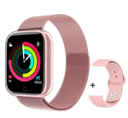 – Aplicativo Mobile: DAFIT OU Happy Sports – Fundo personalizavel com foto via Aplicativo- Leitura na tela de mensagens das redes sociais Controle sua saúde durante o dia a dia com o Smartwatch você informa todos os seus dados sobre esportes, e consegue ajustar todos os seus programas de exercícios e tem um controle de vida mais saudável.O relógio ainda não deixa você perder notificações de chamada e mensagens importantes enquanto pratica seus exercícios.Pulseira com Designer moderno, sendo uma em silicone e outra em metal.As Pulseiras são com fecho magnético ergonômico ajustável (milanese) e pulseira de silicone, serve para todos os pulsos.Principais características:- Tela colorida de 1,3 polegadas- Fonte grande, alto brilho, melhor para olhar.- Monitor de ritmo cardíaco dinâmico durante todo o dia- Sensor de frequência cardíaca incorporado, pode gravar a curva dinâmica da frequência cardíaca em todo o processo de movimento. Suporte ao usuário para verificar todos os tipos de dados do esporte- Múltiplos Modos EsportivosFornece vários modos de esportes, como caminhada, corrida, escalada, ciclismo, basquete, futebol, badminton, etc.- Monitor de sonoEle pode gravar automaticamente o seu sono, você também pode ver a duração do sono e mais dados no aplicativo, ajudando você a desenvolver bons hábitos de sono- Longa duração da bateriaCarregamento de absorção magnética, carregamento simples, baixo consumo de energia. A bateria interna de iões de lítio de 200mAh garante 15 dias em standby quando totalmente carregada- Interface APPTodos os recursos são refletidos no aplicativo, operam facilmente, analisam dados ao mesmo tempo, dão melhores instruçõesInformações Gerais Técnicas:Modelo: P80Versão de Bluetooth: Bluetooth 4.0Sistemas Operacionais Compatíveis:- Bluetooh 4.0;-A prova de Respingos D’água- Língua: Portugues e outrasModo Operacional: Botão de toqueBateria:- Até 7 dias de Uso Comum (Em stand by pode durar até 25 dias)*essas informações podem variar conforme o uso do seu T80.-Battery Capacity: 200mAh
