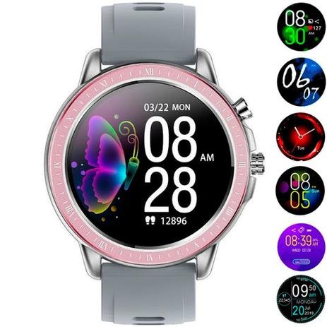 Esse relógio inteligente vai auxiliar suas atividades diárias! Ele se conecta com seu smartphone seja ele do sistema IOS ou Android, notificando novas mensagens, monitorando sua frequência cardíaca, sono, além de te mandar lembretes avisando sobre o seu sedentarismo.FUNCIONALIDADES- Monitor da qualidade do sonoTer o seu sono automaticamente monitorado é uma das vantagens do dispositivo que traça um gráfico analisando a qualidade e a intensidade do sono leve ou profundo. Além disso você pode configurar o alarme para te acordar através da vibração, assim outras pessoas não acordam com o som do seu despertador.- Monitor de oxigênio no sangueTecnologia avançada para medir a saturação de oxigênio, informando sua condição física em todos os momentos e lugares. Ao transferir os dados dinâmicos para o aplicativo, você pode obter uma visão geral de sua condição cardíaca.- Monitor de batimento cardíacoFaz medição dos batimentos cardíacos continuamente por 24 horasOs dados da frequência cardíaca são apenas para sua referência para ajustar o seu exercício, NÃO para uso médico (não serve para uso profissional).- FindEncontre o seu celular quando ele estiver sincronizado com o smartwatch- Music PlayerControle as músicas de seu smartphone- CâmeraAcionamento da câmera do celular pelo smartwatch- Previsão do tempo Real-time display tempo- Pedômetro- Contador de calorias- Rastreador de saúde- Modo Multiesportes – Previsão de ciclo fisiológico- AlarmeQuando sincronizado com o celular, todas as notificações configuradas através do aplicativo são enviadas para o dispositivo, com notificações vibratórias e no display.Descrições técnicas: – 30 opções de display (mostradores da tela inicial)- Compatibilidade: Android e IOS- Forma de tela: Redondo- Tela de 1.28 polegadas – Resolução: 240*240- Plataforma de hardware: Realtek 8762C, flash 128M- Bateria de 180 mah- Idioma: Português, espanhol, inglês, alemão e etc. – Material da caixa: Liga – Material da pulseira: Gel de sílica- Marca: Smart Watch- IP67 resistente água e a poeira (adequado para uso diário, respingo/resistente à chuva. Não é adequado para tomar banho, mergulho e natação).- Chamadas e mensagens do celular, necessita pareamento bluetooth: Chamada, Instagram, Facebook, Whatsapp, WeChat e etc, tudo será enviado para a exibição de pulso e com o alerta de vibração.O pacote inclui:1x Cabo, 1x Manual de Instruções, 1x Smartwatch.