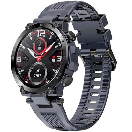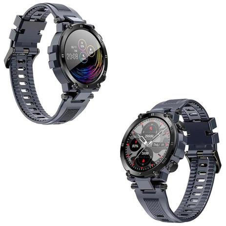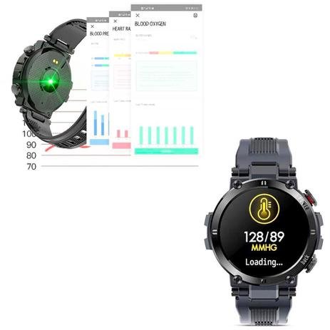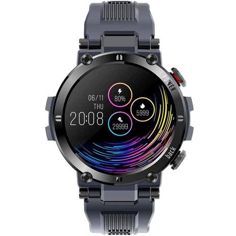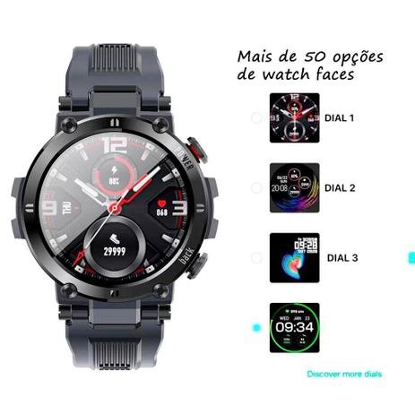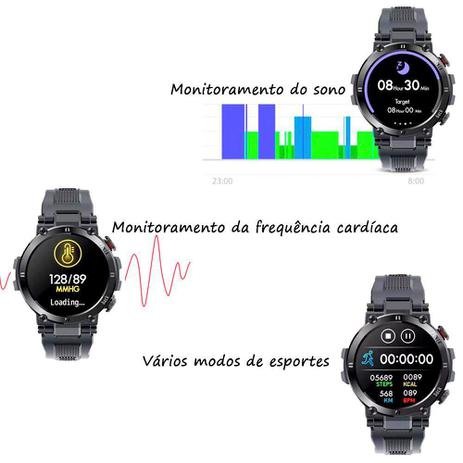 Esse relógio inteligente vai auxiliar suas atividades diárias! Ele se conecta com seu smartphone seja ele do sistema IOS ou Android, notificando novas mensagens, monitorando sua frequência cardíaca, sono, além de te mandar lembretes avisando sobre o seu sedentarismo.FUNCIONALIDADES- Monitor da qualidade do sonoTer o seu sono automaticamente monitorado é uma das vantagens do dispositivo que traça um gráfico analisando a qualidade e a intensidade do sono leve ou profundo. Além disso você pode configurar o alarme para te acordar através da vibração, assim outras pessoas não acordam com o som do seu despertador.- Monitor de oxigênio no sangueTecnologia avançada para medir a saturação de oxigênio, informando sua condição física em todos os momentos e lugares. Ao transferir os dados dinâmicos para o aplicativo, você pode obter uma visão geral de sua condição cardíaca.- Monitor de batimento cardíacoFaz medição dos batimentos cardíacos continuamente por 24 horasOs dados da frequência cardíaca são apenas para sua referência para ajustar o seu exercício, NÃO para uso médico (não serve para uso profissional).- FindEncontre o seu celular quando ele estiver sincronizado com o smartwatch- Music PlayerControle as músicas de seu smartphone- CâmeraAcionamento da câmera do celular pelo smartwatch- Previsão do tempo Real-time display tempo- Pedômetro- Contador de calorias- Rastreador de saúde- Modo Multiesportes- AlarmeQuando sincronizado com o celular, todas as notificações configuradas através do aplicativo são enviadas para o dispositivo, com notificações vibratórias e no display.Descrições técnicas: – Mais de 50 opções de display (mostradores da tela inicial)- Compatibilidade: Android e IOS- Forma de tela: Redondo- Tela de 1.3 polegadas, full touch screen – Resolução: 240*240 IPS- Plataforma de hardware: NRF52832- Bateria de 230 mah- Idioma: Português, espanhol, inglês, alemão e etc. – Material da caixa: Liga – Material da pulseira: Gel de sílica- Marca: Smart Watch – IP67 resistente água e a poeira (adequado para uso diário, respingo/resistente à chuva. Não é adequado para tomar banho, mergulho e natação).- Chamadas e mensagens do celular, necessita pareamento bluetooth: Chamada, Instagram, Facebook, Whatsapp, WeChat e etc, tudo será enviado para a exibição de pulso e com o alerta de vibração.O pacote inclui:1x Cabo, 1x Manual de Instruções, 1x Smartwatch.As cores poderão sofrer pequenas alterações de acordo com a configuração do seu monitor.
