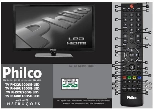 controle remoto original Philco PRODUTO NOVO (não acompanha pilhas) CONTROLE REMOTO PARA TV PHILCO LED LCD PLASMA EMBALAGEM: UNITÁRIO PILHAS: UTILIZA DUAS PILHAS AAA, NÃO INCLUSAS