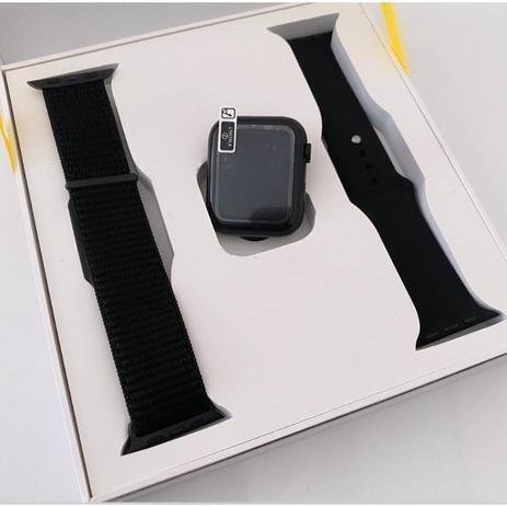 Novo relógio iwo13 série 6 Preto smartwatch com 52 faces 40mm lanç 2021 2 pulseiras Principais Funções Comando de voz Diversas interfaces diferentes customizáveis Chamadas telefônicas Apresenta notificações de mensagens do celular (facebook, whatsapp, etc.) Calendário, Despertador, Calculadora, Cronômetro Controle remoto da câmera do celular Medidor de frequência cardíaca e eletrocardiograma Passômetro (qtde de passos, distancia percorrida e calorias queimadas) Monitor de sono e lembrete sedentário Mensagem vibratória Modo de economia de energia Bluetooth music player (sincronizado com o celular) e gravador de áudio Acionamento automático da tela ao girar o pulso Carregador wireless Suporte a idiomas: Inglês, Portugues, etc. Especificação de Hardware: GPU: MTK2503C RAM: 64 Mb ROM: 256 Mb Display: 1.54″ IPS HD display (tela sensível ao toque completa) Resolução: 1.54 polegada 240×240 Modo de operação: único ponto + gesto Posicionamento: posicionamento Suporte GPS Beidou, os dados são enviados para apk via Bluetooth Motor: motor de vibração Palestrante: 0815_BOX independente cavidade som speaker Sensor de frequência cardíaca: PAH8001ES Método de carregamento: suporte de carregamento sem fio (bobina embutido) Tipo de Bluetooth: BT 4.0 BLE Classificação IP68 Habitação: liga de alumínio caso Bateria: bateria de lítio 380 mAh Tensão de funcionamento: 4.2 v Conteúdo do pacote 1 Smartwatch IVO 13 SÉRIE