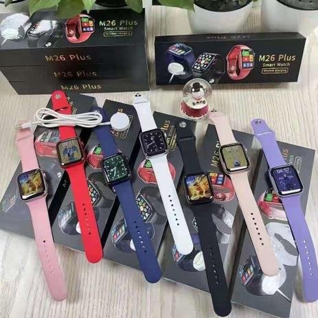 Relógio Inteligente M26 Plus 1.77 polegadas Tela Infinito Homens Rastreador Fitness Smartwatch Carregamento Sem Fio PK 44mm – COR AZUL (PULSEIRA AZUL SILICONE) + PULS EXTRA METAL AZUL Parâmetros 1. Modelo: M26 Plus 2. Dimensões: 44*38,4 * 11mm 3. Material da caixa: liga de zinco 4. Material da cinta: silicone 5. Tela: Tela Quadrada TFT 6. Tamanho da tela: 1.77inch 7. Resolução: 320 * 380 8. Chip: HS6621 9. Sensor Coração: SC7R30 10. Memória: 128M 11. Bluetooth: 5.2 12. Capacidade da Bateria: 200mAh 13. Caminho de Carregamento: carregamento magnético 14. Duração da Bateria: em torno de 10 dias 15. Tempo de espera: 65 dias 16. Modo de Toque: toque completo 17. À prova d’água: IP67 18. APP:WearFit pro 19. Requisitos do sistema:Android 5.0 + / IOS 19. Requisitos do sistema:Android 5.0 + / IOS 10.0 + Funções 1. Fique de olho na sua saúde: Rastreador de sono, lembrete sedentário, frequência cardíaca / pressão arterial / monitoramento de oxigênio no sangue. 2. Um bom ajudante para o treino: Pedômetro, calorias queimadas, distâncias, modos esportivos. 3. Um bom ajudante para o dia a dia: Quando conectado ao telefone: notificações de sincronização (lembrete de chamadas, mensagens, etc.), música bluetooth, etc. Aplicativo em filtro, mostrador dinâmico 3D, tempo, levantar pulso para acordar relógio, alarme, cronômetro, encontrar meu aparelho, calculadora, etc.MAIS UMA NOVIDADE DA SHOPPING NEW TECH ELETRONICOS.