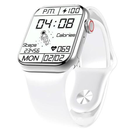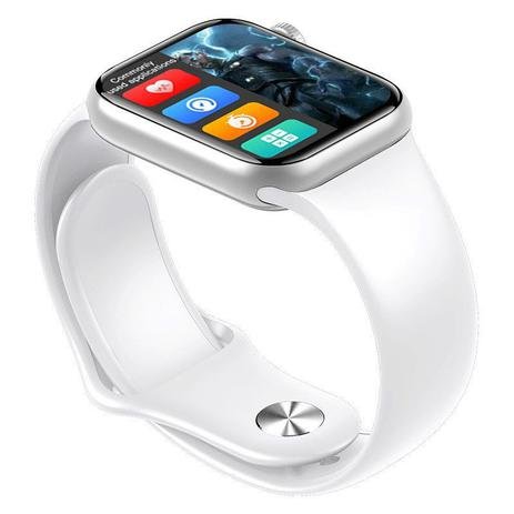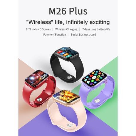 Relógio Inteligente M26 Plus 1.77 polegadas Tela Infinito Homens Rastreador Fitness Smartwatch Carregamento Sem Fio PK 44mm – COR PRATA (PULSEIRA BRANCA SILICONE) + PULS EXTRA METAL PRATA Parâmetros 1. Modelo: M26 Plus 2. Dimensões: 44*38,4 * 11mm 3. Material da caixa: liga de zinco 4. Material da cinta: silicone 5. Tela: Tela Quadrada TFT 6. Tamanho da tela: 1.77inch 7. Resolução: 320 * 380 8. Chip: HS6621 9. Sensor Coração: SC7R30 10. Memória: 128M 11. Bluetooth: 5.2 12. Capacidade da Bateria: 200mAh 13. Caminho de Carregamento: carregamento magnético 14. Duração da Bateria: em torno de 10 dias 15. Tempo de espera: 65 dias 16. Modo de Toque: toque completo 17. À prova d’água: IP67 18. APP:WearFit pro 19. Requisitos do sistema:Android 5.0 + / IOS 19. Requisitos do sistema:Android 5.0 + / IOS 10.0 + Funções 1. Fique de olho na sua saúde: Rastreador de sono, lembrete sedentário, frequência cardíaca / pressão arterial / monitoramento de oxigênio no sangue. 2. Um bom ajudante para o treino: Pedômetro, calorias queimadas, distâncias, modos esportivos. 3. Um bom ajudante para o dia a dia: Quando conectado ao telefone: notificações de sincronização (lembrete de chamadas, mensagens, etc.), música bluetooth, etc. Aplicativo em filtro, mostrador dinâmico 3D, tempo, levantar pulso para acordar relógio, alarme, cronômetro, encontrar meu aparelho, calculadora, etc.MAIS UMA NOVIDADE DA SHOPPING NEW TECH ELETRONICOS.
