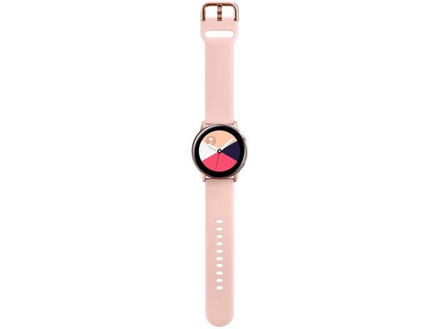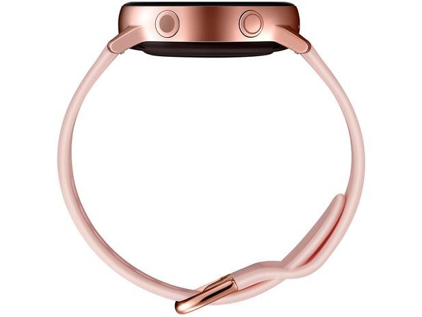 O Galaxy Watch Active da Samsung é o smartwatch ideal para quem busca um estilo de vida saudável. Leve e confortável, ele monitora diariamente suas atividades físicas, suportando mais de 39 tipos de treinos esportivos e acompanha os comportamentos de nível de estresse e sono. Fabricado na cor rosê ele tem um design inovador e moderno. Sua resistência à água é de 50 metros, tela mais resistente a riscos e a durabilidade da caixa é padrão militar. Além disso, o smartwatch possui carregamento sem fio dispositivo para dispositivo, memória interna de 4GB, é compatível com smartphones Android 5.0 ou superior e memória RAM de 1.5GB ou acima. E também compatível com sistema iOS 9.0 ou acima, e smartphone iPhone 5 ou superior.